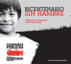 La presentación y lanzamiento de los materiales elaborados por el Equipo Estadístico del Instituto de Empleo y Formación de la CTA y el equipo de Comunicación de la Constituyente Social, en el marco de la Campaña Bicentenario sin Hambre, busca instalar públicamente la necesidad -y posibilidad cierta- de implementar un Salario Familiar Universal que permita acabar con el hambre destinando recursos que no provengan de los jubilados a través de la ANSES.