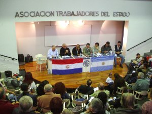 En dicho encuentro participaron el dirigente gremial y ex embajador argentino en El Vaticano, Carlos Custer, junto a Ricardo Peidro, secretario de Derechos Humanos de la CTA; Antolin López Aura, secretario de Relaciones Internacionales de la Central Nacional de Trabajadores (CNT); Ricardo Ramírez, responsable del área Migraciones de la CNT; dirigentes de la Central Unitaria de Trabajadores Auténtica (CUT-A), encabezados por su presidente, Bernardo Rojas; Constancio Mendoza, especialista en cuestiones ernǵeticas, actual director de Itaipú y miembro del cuerpo de asesores del senador Sixto Pereyra por el Partido Popular Tekojoja y Carla Horrisberger, del Bloque Organizativo-Gremial-Territorial de la CTA bonaerense.