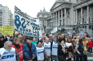 Ayer por la tarde, frente al Congreso de la Nación, se llevó adelante la Marcha Nº 950 de las organizaciones de jubilados y pensionados de la Central de Trabajadores de la Argentina en reclamo de “una nueva Ley de Previsión Social que contemple el 82 % móvil y restituya haberes dignos a nuestros viejos después de toda una vida de trabajo". A la inmensa movilización se sumaron numerosas organizaciones sindicales, barriales y territoriales que militan en la CTA.