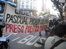“Pascual es uno de los cientos de hermanos de los Pueblos Originarios que están presos de manera injusta”, sentenció Carlos Barreto, de la secretaría de Pueblos Originarios de la CTA platense, “y estamos en contra de esta actitud de los gobiernos de dar cárcel a los que luchan”. A su lado, Víctor Torres, vicepresidente del Centro Cultural Boliviano y representante de la Central Obrera Boliviana (COB) en La Plata, reafirmaba: “repudiamos el encarcelamiento del hermano Pascual y decimos que no podemos seguir viviendo así, porque debemos estar libres todos los que luchamos”.