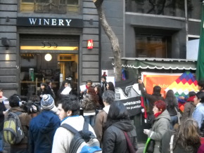 Organizaciones sociales, de derechos humanos y pueblos originarios cortaron el tránsito e hicieron una radio abierta frente al consulado chileno, en pleno centro porteño, reclamando la libertad del periodista Pascual Pichún Collonao y todos los presos políticos mapuches detenidos bajo la ley antiterrorista vigente en ese país.