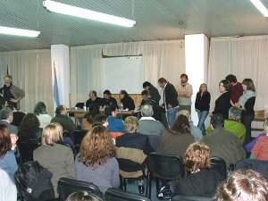 El amplio salón azul quedó desbordado con la multitud que concurrió a la presentación, donde reinó la alegría y la emoción. Desde temprano, un nutrido grupo de estudiantes del CEMOE de la localidad de Centenario, llegó a la Universidad para acompañar a los compañeros que participaron con sus relatos. Y no se quedaron solamente ahí, contagiaron a los demás compañeros para que escriban y lograron que la Municipalidad de Centenario les costeara la edición del libro y que los estudiantes de otro CEMOE se los encuadernara.