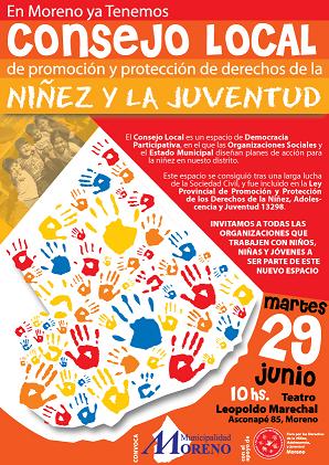 El Foro por los Derechos de la Niñez, la Adolecencia y la Juventud de Moreno, realizará mañana, a las 10, el acto de inauguración del Consejo Local de Promoción de Derechos de la Niñez de esa localidad, que se realizará conjuntamente con el Municipio en el Teatro Leopoldo Marechal.
