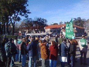 Los trabajadores provinciales, municipales y nacionales enrolados en ATE, se manifestaron hoy exigiendo al gobierno aumento salarial con equiparación de las desigualdades, la devolución de los descuentos por los días de paro, el pago de los cinco meses de asignaciones familiares adeudados, pase a planta de todos los trabajadores del Estados, la derogación de la Ley 11.757 y un Convenio Colectivo de Trabajo para los estatales municipales y el cumplimiento de los acuerdos paritarios.