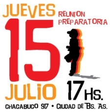 El próximo 15 de julio, a las 17.00, en la Casa de la Coordinación de la Constituyente Social, Chacabuco 917 de la Capital Federal, se llevará a cabo una reunión peparatoria para organizar la 1º Marcha de Organizaciones Culturales Comunitarias y del Arte Independiente el 1º de noviembre en todo el país y la Plaza del Congreso de la Nación en la ciudad de Buenos Aires.