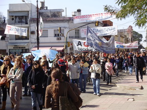 “No nos van a apretar con una conciliación obligatoria. No nos van a quebrar. Los ámbitos de discusión democrática están abiertos. Creemos que el debate de ideas debe hacerse en un ámbito sin presión, y menos con la presión como pretende el Gobierno, de instalar una conciliación obligatoria de urgencia y a último momento, de manera desprolija, y que atenta con la intención de continuar construyendo un consenso”.enfatizó y cedió el micrófono a María Ángeles Parodi, delegada de los trabajadores de la Textil Ejemplar también presentes en la marcha de los maestros, quien reivindicó la “unidad de lucha” y exigió “aumento ya para los docentes y respuestas para la textil”.