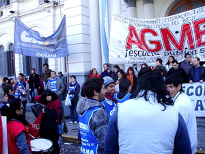 Con una convocatoria notoriamente masiva, la manifestación partió de la sede de la Seccional Paraná de AGMER por calle Buenos Aires y recorrió el microcentro de la capital provincial obstaculizando el tránsito con una columna de tres cuadras que interrumpía por momentos el paso para concentrarse en la entonación de cánticos de protesta. Dirigentes y maestros de Concordia, Diamante, Nogoyá, Rosario del Tala, Federal, Villaguay, Colón, Feliciano, La Paz, Santa Elena, Cerrito, Chajarí, Villa Elisa, entre otras localidades componían la masa en la que además se distinguía a los representantes de la CTA, de organizaciones adheridas a la central obrera y su imponderable batucada.
