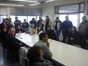 En Capital Federal: con el ministro de Trabajo, Carlos Tomada. Viajan: Alberto Piccinini, Juan Actis y Leandro Del Greco, secretarios General, Adjunto y de Organización de la UOM de Villa Constitución, organización enrolada en la CTA. los acompaña Fabio Bellini de la Comisión Interna de Paraná Metal.