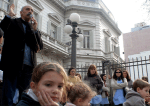 “No al cierre del Jardín Maternal”, era una de las consignas que se escuchaban, apenas comenzaba la tarde, desde unos potentes parlantes en que las palabras, como no podía ser de otra manera, estaban matizadas musicalmente por los clásicos de María Elena Walsh.