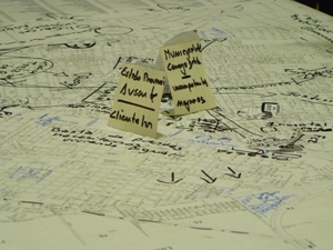 Luego se formaron grupos con la consigna de marcar en el mapa de la ciudad de Río Cuarto los sectores que presentan desigualdades sociales, los puntos de mayor concurrencia de gente y los barrios en donde los vecinos están organizados conjuntamente con las organizaciones territoriales que militan allí.