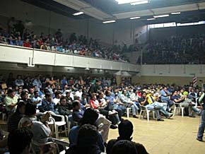 Hoy volvió a paralizarse la actividad en la industria del neumático. A la Federación Argentina de Box, en la Capital Federal, llegaron micros provenientes de Merlo, San Fernando y Llavallol que dieron vida a una nueva asamblea del Sindicato Único de Trabajadores del Neumático (SUTNA-CTA). Luego de las deliberaciones y de la puesta en común de los alcances de las negociaciones con las empresas, la decisión de los más de 840 delegados presentes fue unánime: “Si mañana en el Ministerio no hay respuestas, el viernes paramos”, adelantó Rubén Silva, secretario Adjunto del gremio, a ACTA momentos antes de que comenzara la votación de la asamblea.