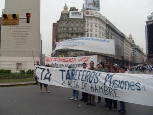 Integrantes del Sindicato de Tareferos de Montecarlo, Misiones, adheridos a la Central de Trabajadores de la Argentina (CTA), cortaron ayer media calzada de la Avenida 9 de Julio por casi 7 horas. Marcharon hasta el Congreso Nacional y obtuvieron el compromiso de legisladores nacionales de acompañar el reclamo. Hoy a las 10.00 serán recibidos por funcionarios de la ANSES.