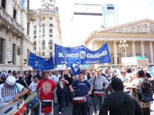 Los compañeros del Banco Ciudad llevaron a cabo el viernes al mediodía una movilización desde la esquina de Florida y Sarmiento hasta la Legislatura, con previo paso por la Jefatura de Gobierno porteña. Fue contra las políticas represivas de Mauricio Macri, y para terminar con las tercerizaciones y los contratos basura, entre otros puntos.