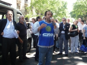 La nutrida columna, que recibió en su camino adhesiones del Banco Provincia, del Nación y del Central en vísperas al día del trabajador bancario, se movilizó por las calles del Microcentro hasta desembocar en la puerta de la Jefatura de Gobierno. Allí, Adolfo Ieraci, en representación de sus compañeros del Banco Ciudad expresó: “Macri, a Federico Sturzenegger (Presidente del Banco Ciudad) lo pusiste vos y vos lo vas a tener que sacar, porque está llevando adelante políticas represivas.”