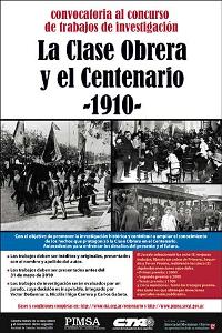 "La Central de Trabajadores de la Argentina, el Programa de Investigación sobre el Movimiento de la Sociedad Argentina, la Cátedra Historia del Movimiento Obrero. Aproximación desde los Trabajadores (Universidad Nacional de Lanús) y la Cátedra Historia de la Clase Obrera y el Movimiento Obrero Argentino (Facultad de Ciencias Sociales–Universidad de Buenos Aires) informaan el dictamen del Jurado del Concurso de trabajos de investigación “La Clase Obrera y el Centenario -1910-”.