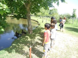 Así, mientras se fascinaban con los pumas y águilas, correteaban patos y pavos reales, intentaban pescar algún pez en el arroyito o simplemente hacían “cantar” a los monos aulladores; la merienda los juntó bajo la sombra que los árboles nos regalaron en tan soleada y hermosa tarde.