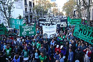 La Asociación de Trabajadores del Estado (ATE-CTA) se movilizó masivamente y paró en todo el país. La medida fue para exigir, además de un aumento salarial del 30 por ciento, la implementación de un fondo federal de salarios, la convocatoria a paritarias libres tanto para el Estado nacional, como los provinciales y municipales, terminar con el trabajo en negro y respetar el 82% móvil para los jubilados.