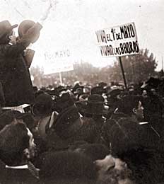El 11 de noviembre de 1887 cuatros líderes anarquistas fueron ejecutados en la ciudad de Chicago. Las condiciones de extrema pobreza en la que la mayoría de su población vivía hizo que se convirtiera en la médula espinal de la movilización obrera en los Estados Unidos. Tres años antes, en Chicago, se había celebrado el IV Congreso de la American Federation of Labor que definió el 1 de mayo de 1886 como fecha límite para que la patronal respete la jornada de 8 horas y termine con la sobreexplotación. De lo contrario, se declararía la huelga general.