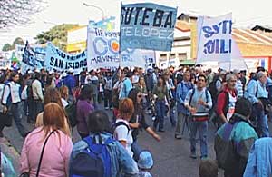 Desde el Suteba dieron cuenta que estas causas judiciales se debe “a la participación de los compañeros en reclamo de trabajo y alimentos, lo que constituyen una muestra de la judicialización de la protesta social contra los luchadores populares en el justo reclamo por las necesidades de vastos sectores de nuestro pueblo castigados por el hambre, la desocupación y la falta de justicia”.