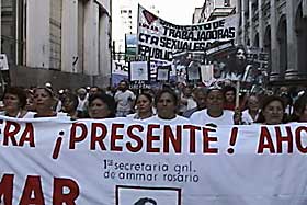 Por Nadia Mansilla, enviada especial. En el día de ayer se cumplió el primer aniversario del asesinato de Sandra Cabrera, secretaria general de AMMAR Rosario. En ese marco, se realizó una marcha en esa ciudad santafesina a la que asistieron representantes de distintas organizaciones sociales y de la CTA de todo el país, reclamando el esclarecimiento de este crimen, aún impune.