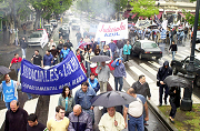 Desafiando la lluvia, los trabajadores judiciales bonaerenses de toda la provincia hoy se movilizaron masivamente hasta las sedes de la Suprema Corte de Justicia y del Ministerio de Economía. Hugo Blasco, secretario general de la AJB, anunció que “si no hay repuestas a nuestros reclamos, vamos a profundizar el plan de lucha, que debatiremos en el Congreso Provincial del próximo 3 de noviembre”.