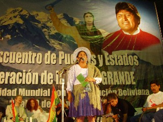 Una de las oradoras del tema indígena fue la presidenta de la Asamblea Constituyente de Bolivia, Silvia Lazarte, quien se refirió a la importancia de unir a los pueblos latinoamericanos coincidiendo con el senador Ramírez, resaltó la unión de los pueblos latinoamericanos y “el derecho que tienen de refundar la Patria Grande para poder mejorar las condiciones de vida de millones de personas, especialmente, los (pueblos) originarios indígenas marginados durante siglos en la vida social y política del continente”.