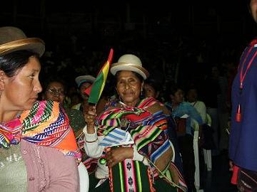 Banderas del Movimiento al Socialismo (MAS) de Evo Morales, de la Confederación Unica de Trabajadores Campesinos de Bolivia (CSUTCB), de trabajadores sociales y comunitarios del MAS, de la Juventud Bolivariana de Bolivia (JBB), del Movimiento Sin Tierra de Bolivia, del movimiento Pachakutic, también banderas con adhesiones a la Asamblea Constituyente. Y al presidente Morales. Banderas del Perú, Paraguay, Colombia, Venezuela. De la Argentina destacaban la presencia de la CTA, del Movimiento Campesino de Formosa, de ATE. Además, numerosas organizaciones indígenas del continente obsequiaban a las delegaciones símbolos de su cultura.