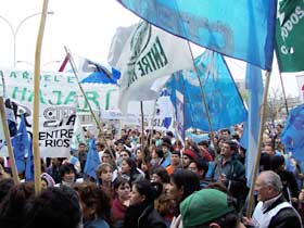Aumento salarial, libertad sindical y asignación universal por hijo fueron los ejes con que más de 2.000 personas marcharon hoy en la capital provincial, convocados por la CTA Entre Ríos, en el marco de la Jornada Nacional de Protesta de la Central. El paro dispuesto por la Central alcanzó un acatamiento del 90% en toda la provincia y en cada uno de los sectores.