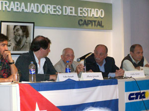 Con la presencia del secretario general de la CTA porteña, Fabio Basteiro, del secretario general de la Asociación Trabajadores del Estado de Capital, Leopoldo González y de Fernando Cardozo, quien la ATE ha designado como responsable de las relaciones con Cuba, Alberto Granado y Carlos Ferrer hicieron un breve repaso sobre su amistad y sus viajes junto al Che Guevara.