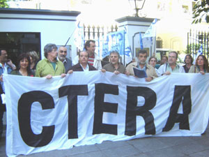 Hoy al mediodía, integrantes de la Confederación de Trabajadores de la Educación (CTERA-CTA) se movilizaron hacia la Embajada de México y fueron recibidos por el secretario de la Embajadora de ese país, Rafael Reinal.