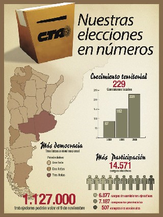 El 9 de noviembre se realizarán en todo el país las elecciones directas de la Central de Trabajadores de la Argentina. Presentamos aquí los detalles.