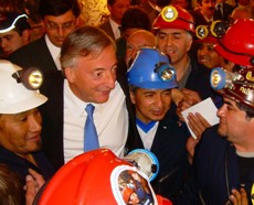 Y el presidente Kirchner estaba ahí, escuchando como distraído, o buscando también darle un corte a la emoción. Es probable que por esa razón dejara la palabra al Ministro. Hay una historia y hay gestos de la historia que hermanan, anhelos compartidos. Y delante del presidente los 151 mineros que viajaron en micro desde el Turbio, con sus cascos, las luces, la impaciencia por festejar. Y no bien terminó de hablar De Vido, los mineros se abalanzaron sobre el presidente -que hasta intentó una retirada rápida. No pudo. Quedó enredado entre los cascos y todos queriendo una foto.