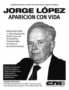A través de una carta, la familia de Jorge Julio López le pidió hoy al presidente Néstor Kirchner, que "no baje los brazos" y prosiga con la búsqueda del hombre que testificó contra el represor Miguel Etchecolatz y hace casi tres meses que está "desaparecido".