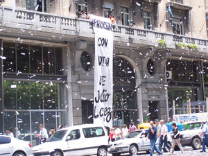Al cumplirse tres meses de la desaparición de Jorge Julio López, la CTA Capital realizó -como parte de las actividades previstas para hoy en todo el país- un papelazo en la esquina de Diagonal Norte y San Martín. Estuvieron presentes compañeros de las distintas organizaciones, miembros de la mesa ejecutiva de Capital y Nacional, entre ellos el Secretario de Derechos Humanos de la Central, Ricardo Peidro.