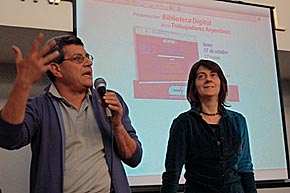 Ayer, en el Anfiteatro Eva Perón de la ATE, se presentó la nueva Biblioteca Digital de los trabajadores argentinos. La iniciativa se enmarca dentro del proyecto de la Biblioteca y el Centro de Documentación del Movimiento Obrero de la CTA, inaugurados el 17 de diciembre del año pasado, y ya puede ser consultada en www.bibliotecacta.org.ar