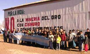 Pronto, la posible extracción de oro mediante el uso de cianuro se transformó en el eje político de la región. Las Comunidades Mapuche Ranquehue y Fvta Anekon, integrantes de la Coordinadora del Parlamento del Pueblo Mapuche en Río Negro, convocaron a una gran marcha y acto en defensa de los recursos naturales para el día 19 de abril, en la plaza de los ex ferroviarios. El 2 de mayo de 2005 la intendenta de Ingeniero Jacobacci, Gabriela Buyayisqui, declaró en la prensa regional que "no vale la pena un proyecto que pone en riesgo el agua." Una carta pública de los Autoconvocados de Jacobacci, fechada ese mismo mes, reclamaba al gobernador Miguel Saiz "copias de las solicitudes autorizaciones otorgadas a las empresas que están efectuando tareas de exploración minera en la Región Sur y las coordenadas que limitan las áreas de exploración y los territorios correspondientes a las comunidades mapuche". A mediados de junio, las manifestaciones de rechazo se trasladan a Viedma, capital de la provincia. Precisamente a la sede de la dirección provincial de Minería. Allí convergen el Consejo Asesor Indígena (CAI), centros de estudiantes, organizaciones sindicales y vecinos de la ciudad para realizar un escrache. Las sociedades rurales de la Línea Sur, Bariloche y San Antonio Oeste, la Asociación Rionegrina de Caprinocultores de Angora y el Consejo de Desarrollo de Comunidades Indígenas (CODECI) también se manifestaron en contra y exigían explicaciones al gobierno. Poco tiempo después, el 25 de junio, una nota en Página 12 daba proyección nacional al conflicto. En una declaración pública fechada el 29 de noviembre de 2004, Monseñor Fernando Carlos Maletti, obispo de San Carlos de Bariloche, y Miembros del Departamento de Pastoral Social de esa Diócesis, comunicaron que terminantemente "se oponen a la minería del oro a cielo abierto con lixiviación con cianuro". Con el mismo objetivo se había declarado la Unión de Trabajadores de la Educación de Río Negro. El Concejo Deliberante de Maquinchao prohibió el uso de cianuro, o cualquier otra sustancia tóxica, en actividades mineras. hacia fines de 2004 ya lo habían hecho los municipios de Sierra Colorada y Ramos Mexía.
