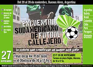 La idea está en marcha desde hace tres años y se está concretando. El pasado 23 de noviembre comenzó el Primer Encuentro Sudamericano de Fútbol Callejero, camino al festival 2006 de Street Football World (Mundial de Fútbol Callejero), que integra oficialmente el programa artístico y cultural de la Copa del Mundo 2006.