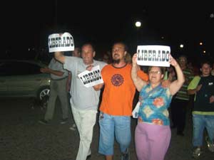 "Acá se acabó el miedo", dijo visiblemente emocionado el joven Cristian Ruggeri, hijo del liberado Raúl y sobrino del ex futbolista campeón del mundo en 1986. Reconoció que su “viejo”, después de la liberación, “está muy depresivo” y destacó el gesto de Gabriel Irusta, uno de los quince liberados, quién a pesar de ser “apretado” por las autoridades “no mandó en cana a nadie”.