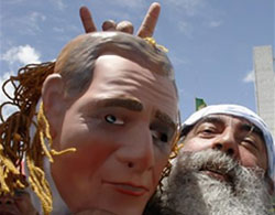 Como la estruendosa llegada coincide con las celebraciones del Día Internacional de la Mujer, las consignas feministas unificaran las reivindicaciones de género con la proclama “fuera Bush de América Latina”.