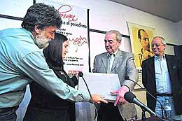El secretario General de la UTPBA dijo más adelante que “Juan Gelman cumple 50 años de periodista. De un periodismo donde la prosa implacable no permite que holocaustos, dictaduras, genocidas, torturadores, criminales, apropiadores de bebés, explotadores intenten ni el olvido ni la distracción, ocultando responsabilidades asesinas bajo el felpudo de la impunidad. Lo saben, entre otros, quienes todavía se niegan a entregar el cuerpo de María Claudia, su nuera”.