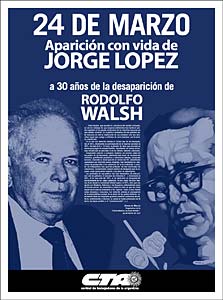 Acto: Recordaremos los 31 años del proceso militar, 30 años de la desaparición de Rodolfo Walsh y los 6 meses de la desaparición forzada de Jorge Julio López