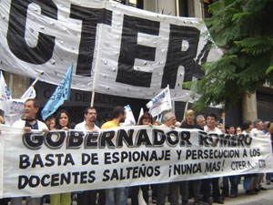 “La CTERA repudia enérgicamente este accionar avasallante de los derechos humanos elementales, hace responsable al gobernador Juan Carlos Romero de la seguridad personal y la estabilidad laboral de los docentes salteños” y exigirá “la separación del Jefe de la D2, comisario Rubén Armando Sandoval”.