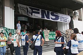 Al llegar a la sede del Ministerio se reunieron con los integrantes de la Federación Nacional de Salud (FNS-CTA), encabezados por su secretario general, Héctor Carrica, quienes habían instalado durante toda la mañana una radio abierta en las puertas del organismo. Información sobre la situación de la salud pública, las condiciones de trabajo en todo el país, la organización de los trabajadores y la comunidad en cada hospital y las cifras de la pobreza y la enfermedad, fueron los ejes de esta actividad abierta a la que se sumaron luego los manifestantes.