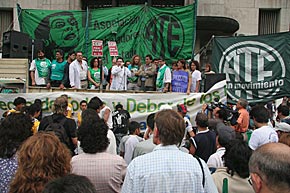 Cerrando los discursos, en medio de bombos, cánticos y cohetes, el secretario de Asuntos Provinciales de ATE Buenos Aires, Oscar de Isasi, indicó que "pese a la caída del consenso neoliberal en nuestra sociedad, en materia sanitaria esas políticas se profundizan mediante el Plan Federal de Salud que busca imponer el ministro Ginés González García, quien promueve el desguace del sector público de salud reduciendo presupuesto y negociando con los grupos económicos que operan en el sector. Esto tuvo un resultado comprobado: la disminución de la calidad de la atención de la salud pública".