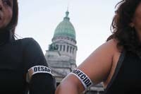También estuvieron presentes las fotos de Florencia Pennachi, Fernanda Aguirre y Otoño Uriarte, que sobrevolaron la tarde de protesta frente al Congreso de la Nación. Militantes sociales y políticas, entre ellas integrantes de la Secretaría de Igualdad de Género de la CTA, y líderes de organizaciones feministas y de defensa de los derechos de las mujeres se concentraron allí, a partir de las 18, para reclamar la aparición con vida de las víctimas de la trata de personas. “Desaparecida”, decía la cinta pegada en el pecho de una joven que repartía volantes. “Es una forma de decir a la sociedad que todas podemos ser víctimas de las redes de secuestro y prostitución”, explicó una integrante de la Red No a la Trata que lució la consigna en el brazo.