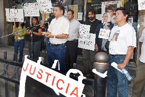 Calixto Gómez, padre del joven asesinado, y su hija, acompañados por familiares, amigos y la CTA de Misiones; por Laura Bonaparte, de Madres de Plaza de Mayo Línea Fundadora; Luis Borsi, de Hijos; Raquel Witis, madre de Mariano, víctima de la brutalidad policial, el diputado nacional Edgardo Depetri; referentes del Frente Transversal, entre ellos Oscar Laborde y Pasiano Ocampo, y más de 500 militantes sociales y de organismos de derechos humanos se manifestaron frente a la representación misionera para acompañar la entrega de un petitorio.