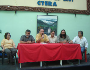 “Convocamos a un paro de 24 horas para el día lunes para exigir a los gobiernos provinciales, principalmente en Neuquén donde hay un herido muy grave, a que cesen de inmediato la represión a los docentes. Lo mismo plantemos al Gobierno de Salta, habida cuenta de que esta madrugada hubo represión con balas de goma a nuestros compañeros. E Instamos a los Gobiernos de Santa Cruz y La Rioja a acercar soluciones para que los conflictos se puedan destrabar porque no queremos llegar a instancias como estas”, anunció Hugo Yasky en una conferencia de prensa realizada este mediodía en la sede central de la CTERA.
