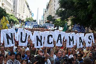 Más de 300 actos se desarrollaron en todo el país en repudio al asesinato del docente neuquino, al paro general de la CTA adhirió la CGT con una hora de cese de actividades, entre las 12 y las 13. Las consignas “Nunca Más”, “No a la impunidad”, “No a la represión de la protesta social” y “A los que manchan de sangre las tizas”, se hizo sentir con fuerza.