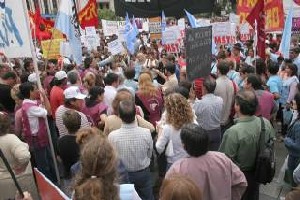 Unos 2.000 trabajadores, estudiantes universitarios y desocupados de la provincia se concentraron ayer en la Plaza Independencia de la ciudad de Tucumán para hacer sentir su solidaridad con los docentes de Neuquén que reclaman mejoras salariales. Repudiaron la muerte del profesor Carlos Fuentealba. Además todos coincidieron en que el Estado tucumano debe mejorar los salarios de los trabajadores estatales. La actividad escolar de ayer fue nula en los diferentes niveles del sector público y privado.