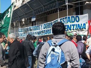 También se refirió la lucha emprendida por el pueblo de Neuquén donde todos los sindicatos con el acompañamiento de la sociedad están acampando en la Casa de Gobierno de esa provincia para exigir la renuncia del gobernador Jorge Sobisch y todo su gabinete “no va ha haber diálogo, no va ha haber convenciones colectivas de trabajo sino hay justicia para el compañero Carlos Fuentealba”.